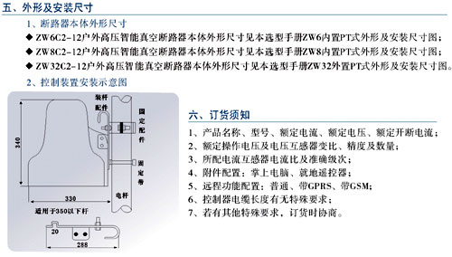 断路器可以手动操作、电动操作、遥控器操作及远程主机操作。断路器由本体、操作机构、控制器三部分组成(隔离开关由用户选择加装)。断路器根据需要可配置CT(保护电流互感器)、ZCT(零序电流互感器)、u(电压互感器),作为控制器的检出器。