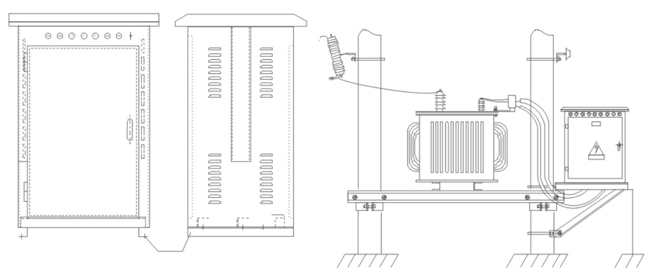 GGJ系列低压无功分相补偿成套装置(以下简称装置)是安装在变压器侧或负载旁的、以补偿变压器所带负荷为三相不平衡负荷所消耗无功的一种无功补偿装置。该装置分柱上式和落地安装式二种结构。