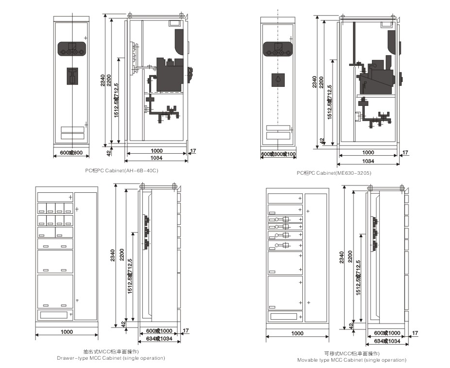 本开关柜由于引进了瑞士ABB的技术,并在其原有基础上加以技术改进,使其更符合我国国情。柜体采用25mm为模数的C型材通用连接件来组成各种需求的柜架结构和抽屉单元,在MCC柜中大量采用高强度的阻燃型工程塑料组件,使其安全性能更可靠,同时加之将国外的功能板加以改型,以200mm为模数加以组合,使其更有利于PC柜与MCC柜混装柜体的设计需求,抽出单元与柜体具有可靠的联锁装置,以防止在开关通电状态下带负荷拉闸,提高了其安全性,另外该柜体一般均采用冷轧钢板进行钝化处理后组装而成,也可根据用户的不同需求采用敷铝锌钢板。