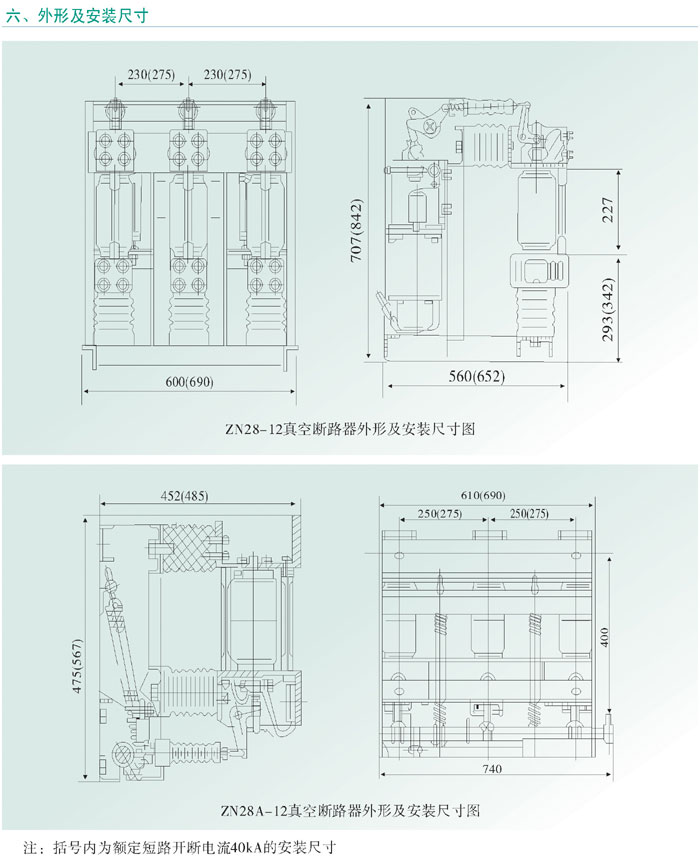ZN28-12系列真空断路器为额定电压12kV,三相交流50Hz的户内高压开关设备。该产品总体结构分为开关本体与操动机构一体安装和开关本体与操动机构分离安装两种形式。一体式结构即为ZN28-12基本型;分体式结构为ZN28A-12型,适用于各种固定式开关柜,如CClA(Z),XGN2A-10(Z)等。