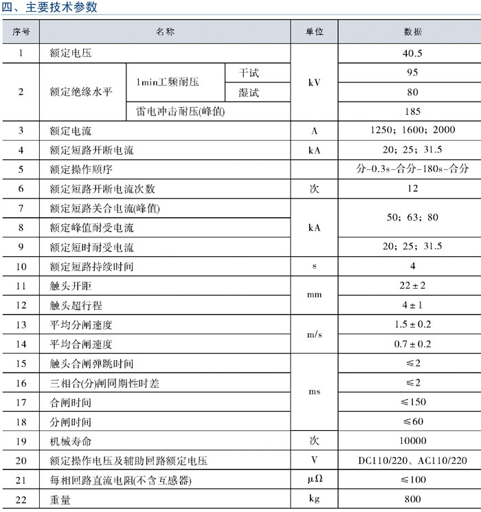 1、采用真空灭弧,开断能力强,电寿命长,机械寿命10000次;