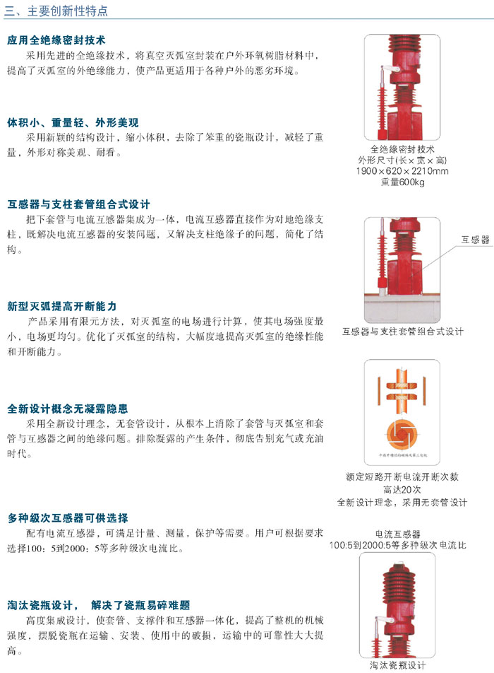 一、概述 ZW7B-40.5系列户外高压真空断路器(以下简称“断路器”)用于交流50Hz、40.5kV的三相电力系统中,作为分、合负荷电流、过载电流及短路电流之用。 该产品使用时应该满足以下环境条件: a周围空气温度:上限+40度,下限-40度; b.海拔:≤1000m(超过1000m时,按相应海拔系数修正电气参数; c.风压:不超过700Pa(相当于风速34m/s); d.地震烈度:不超过8度; e.污秽等级:III级(防污型达Ⅳ级)。