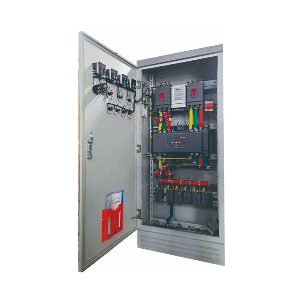 落地式双电源配电柜是户内靠墙安装,单面前开门的配电装置。其基本结构釆用钢板弯制及角钢焊接而成。前右侧可装设刀开关操作手柄,作为电源切断与接通操作之用,箱门上可装设操作按钮,指示灯及显示仪表,打开箱后,配电箱内部设备全为敞露,便于检修维护。本配电装有空气断路器,熔断器作为短路保护外,还装有接触器和热继电器。门与壳体均焊有接地螺钉,确保壳体与地连接可靠。